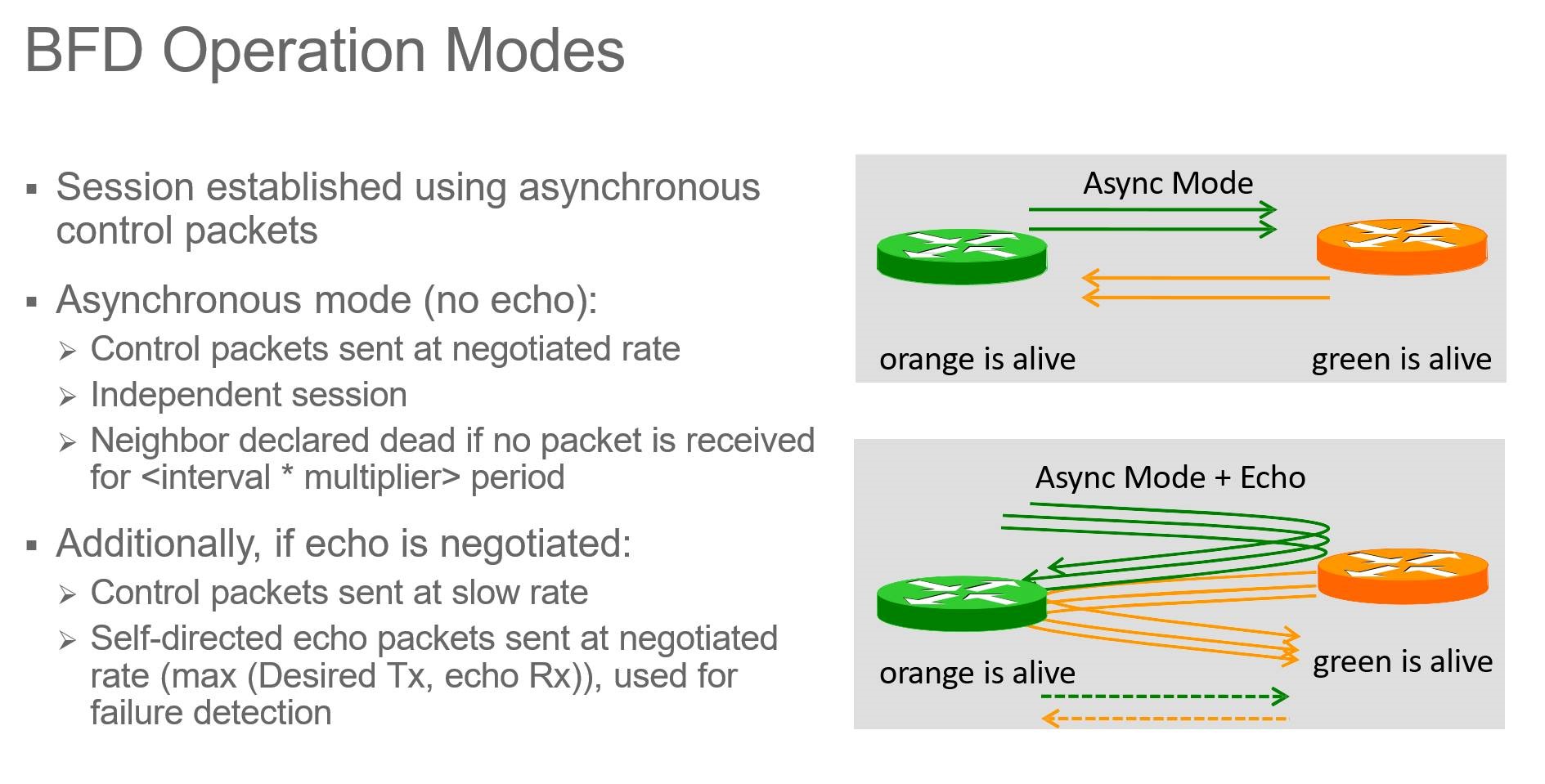 Một trong những giải pháp kiểm tra sự cố đường truyền giữa các Router nhanh chóng là điều chỉnh thời gian gửi các gói Hello và Keep-Alive trên các giao thức định tuyến đến một giá trị rất nhỏ. Tuy nhiên, thời gian phát hiện ra sự cố vẫn chưa thực sự nhanh lắm và số lượng các Hello quá nhiều sẽ làm tiêu tốn CPU và giải pháp này không hiệu quả khi số lượng Router mở rộng số lượng.