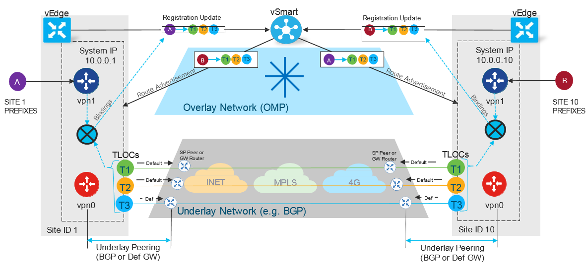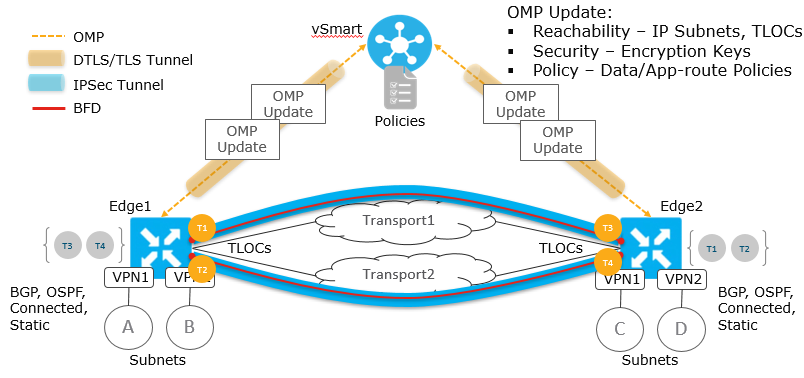 vSmart là Controller điều phối các Action và Event tới các vEdge ở Data Plane.