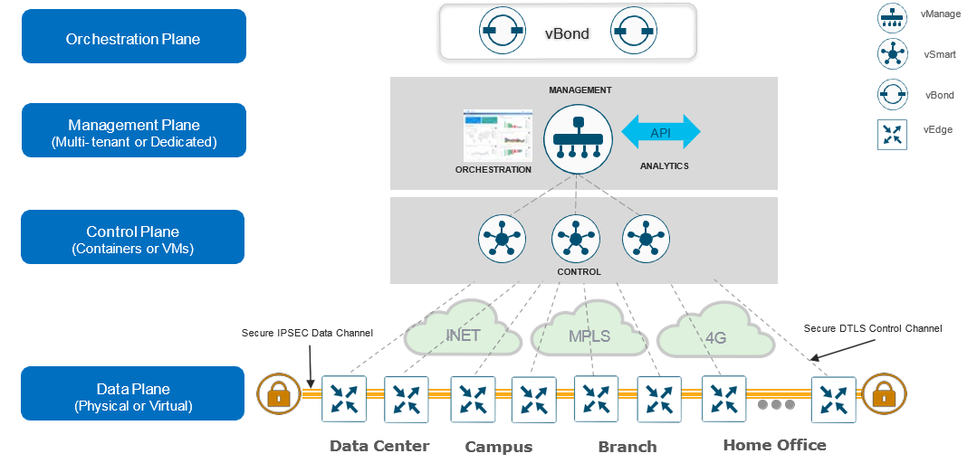 Management Plane: Mặt phẳng quản lý bằng giao diện chứa các vManage.