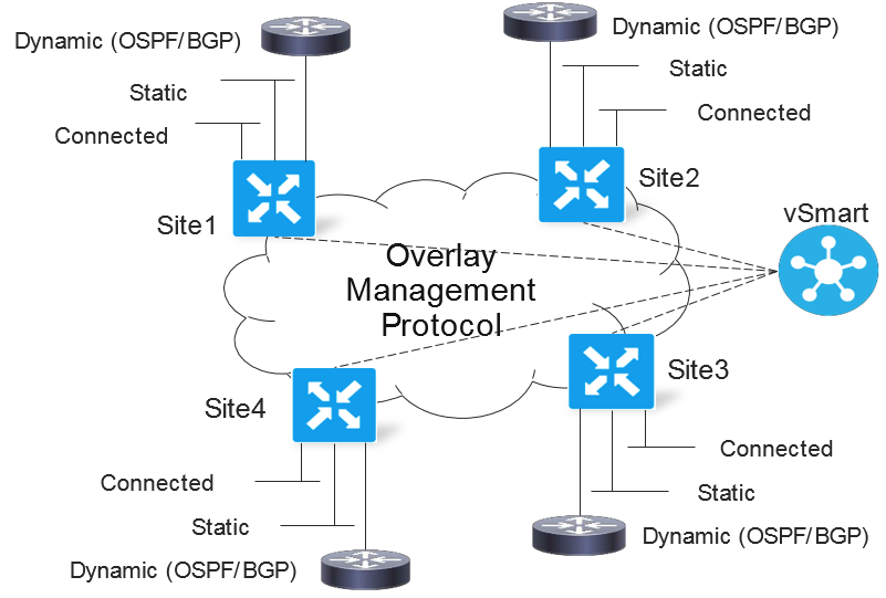 OMP Route giúp cho các vSmart có thể học được mô hình mạng Overlay và các dịch vụ đang có trong hệ thống mạng. Giao thức OMP sẽ thu thập các thông tin định tuyến từ các Site nội bộ chi nhánh bao gồm các Route Connected, Static, OSPF, BGP.