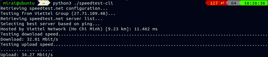 Cài đặt Speedtest: sudo apt-get install speedtest-cli