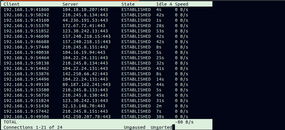 Cài đặt TCPTrack: sudo apt-get install tcptrack